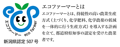 極力農薬や化学肥料に頼らず、有機肥料や籾殻などを用いる「循環型農法」を取り入れ、エコファーマーとして県の認証を受けています。